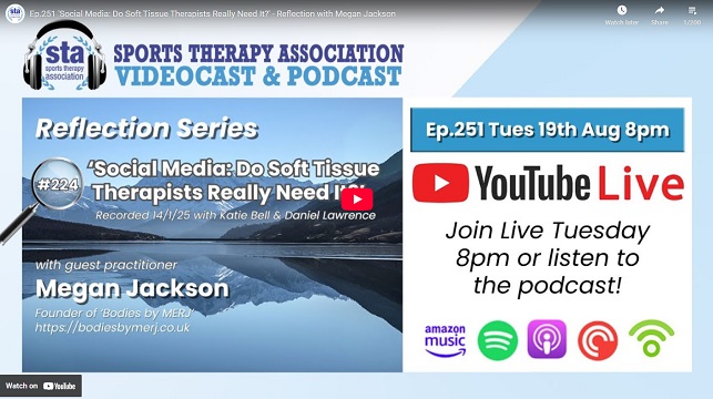 adminSTA2025-08-25 17:57:082025-08-29 12:46:44Ep.251: ‘Social Media: Do Soft Tissue Therapists Really Need It?’ – Reflection with Megan Jackson