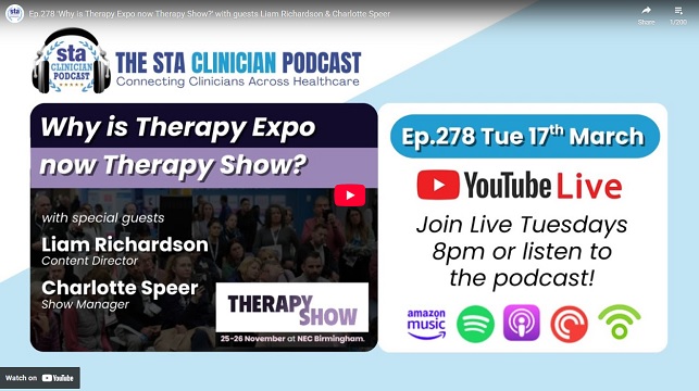 adminSTA2026-03-23 19:32:272026-03-23 19:33:09Ep.278: ‘Why is Therapy Expo now Therapy Show?’ with guests Liam Richardson & Charlotte Speer
