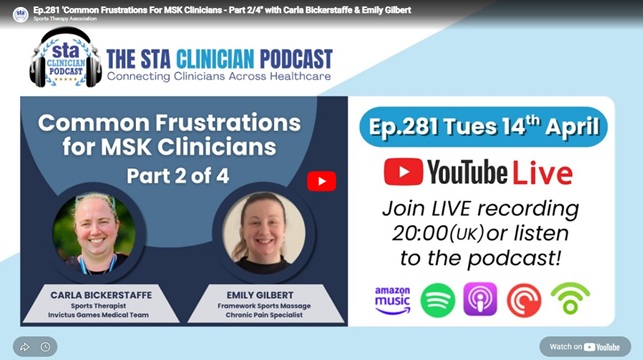 adminSTA2026-04-17 16:05:392026-04-17 16:07:23Ep.281: ‘Common Frustrations For MSK Clinicians – Part 2/4’ with guests Carla Bickerstaffe & Emily Gilbert